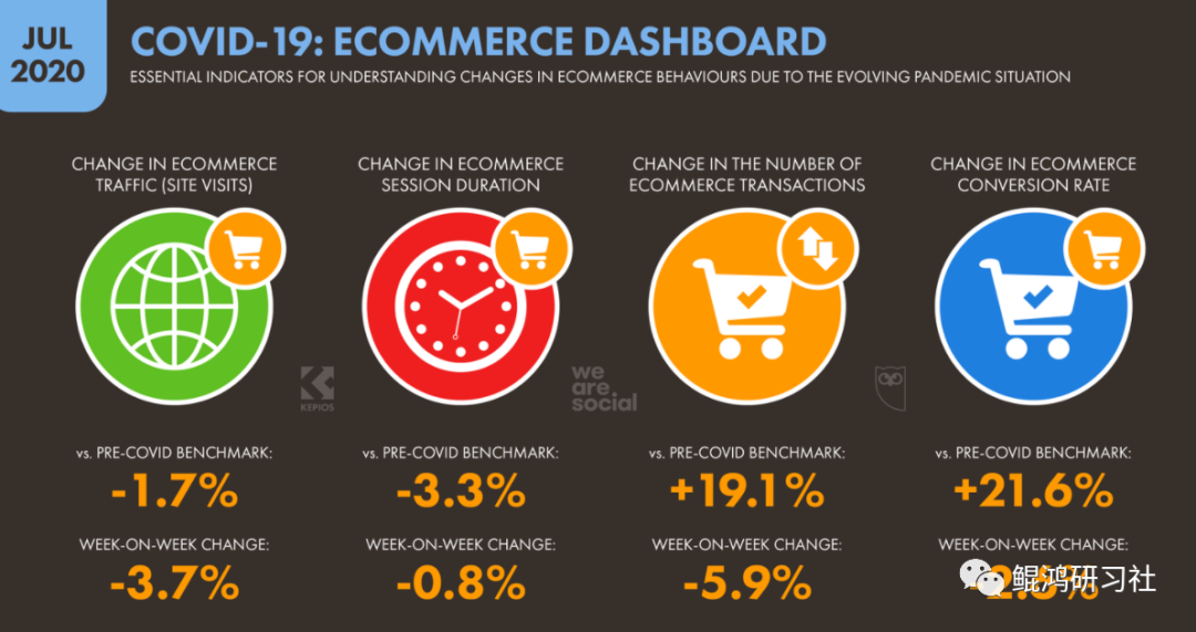 与2020年初相比,7月整体电子商务交易量增长了约20%。