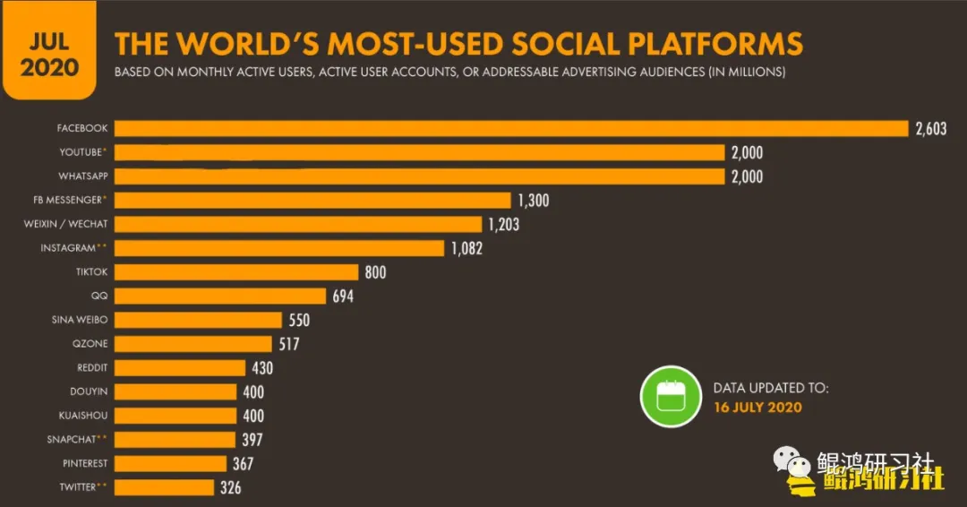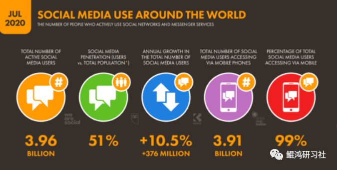 社交媒体用户在过去一年中增长了10%以上,到2020年7月开始,全球总数达到了39.6亿。