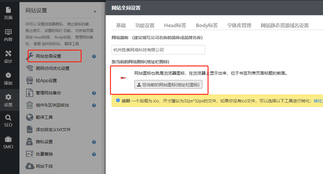 2.建议制作网站图标(地址栏图标)并上传,以提高网站美观度,提升客户信任度。