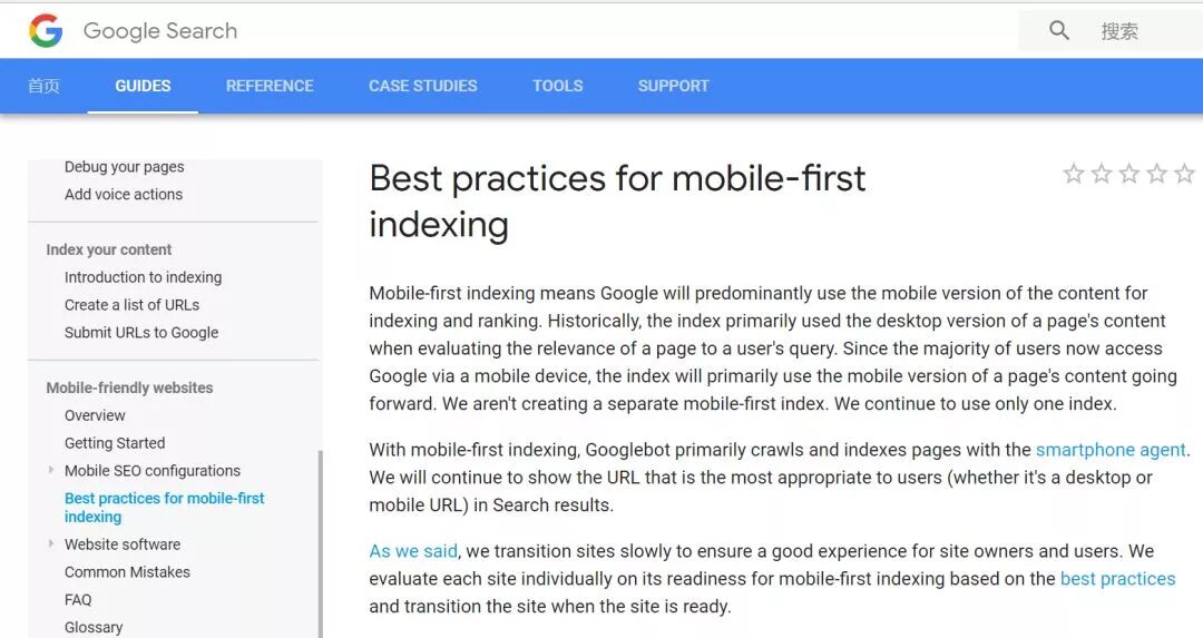2018年3月26日,Google正式宣布,在搜索结果中推送“移动优先索引”,即在索引中优先收录移动版的网页内容。这意味着今后Google的爬虫、索引和排行系统都主要以移动端作为内容参考。